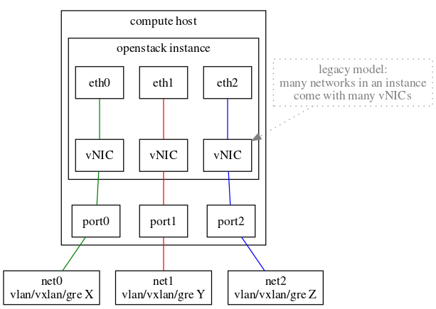Trước khi có trunk networking, mỗi network cần một vNIC riêng - không scale được: